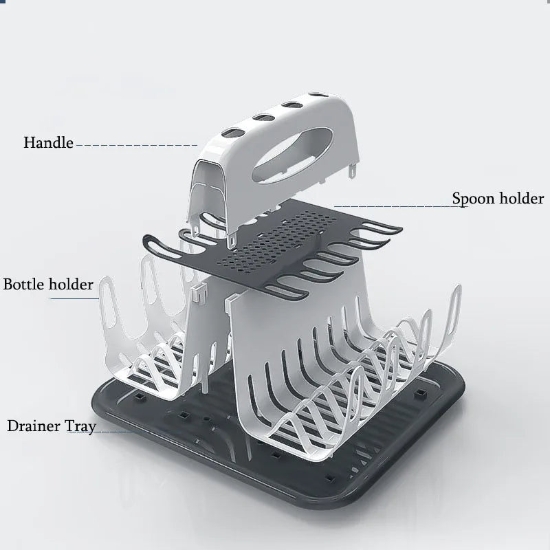 אין יותר בקבוקים מפוזרים או כפיות רטובות על השיש – מתקן הייבוש החכם שלנו שומר על סדר, ניקיון וסטייל!