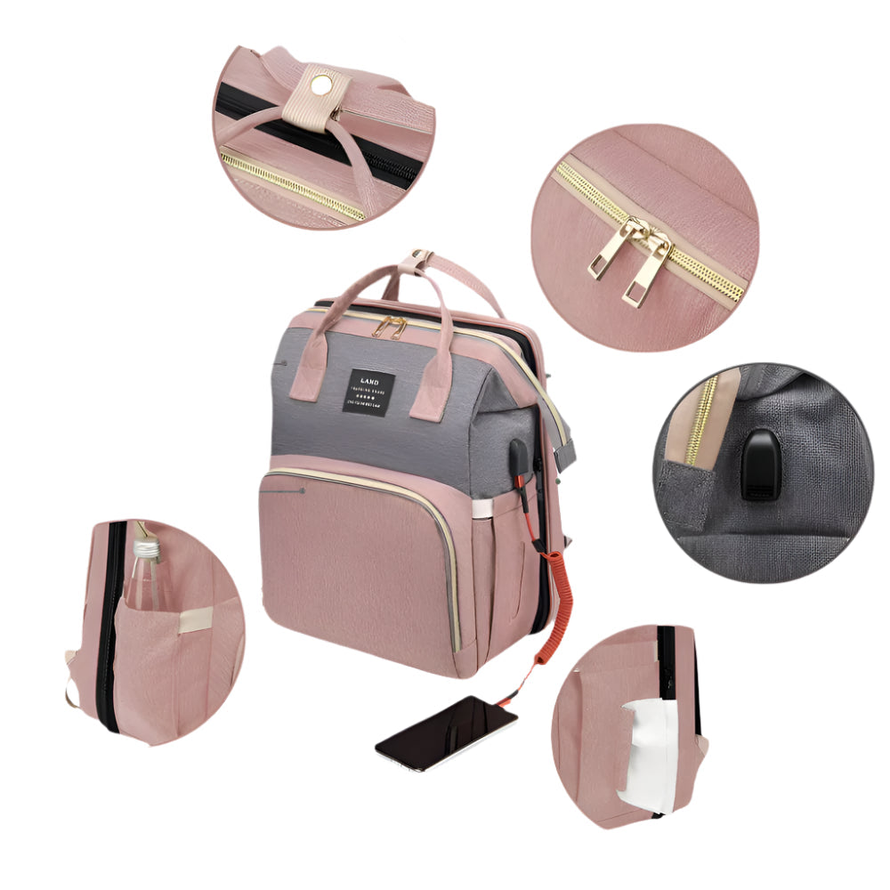 תיק גב חכם לאמהות עם מיטת תינוק